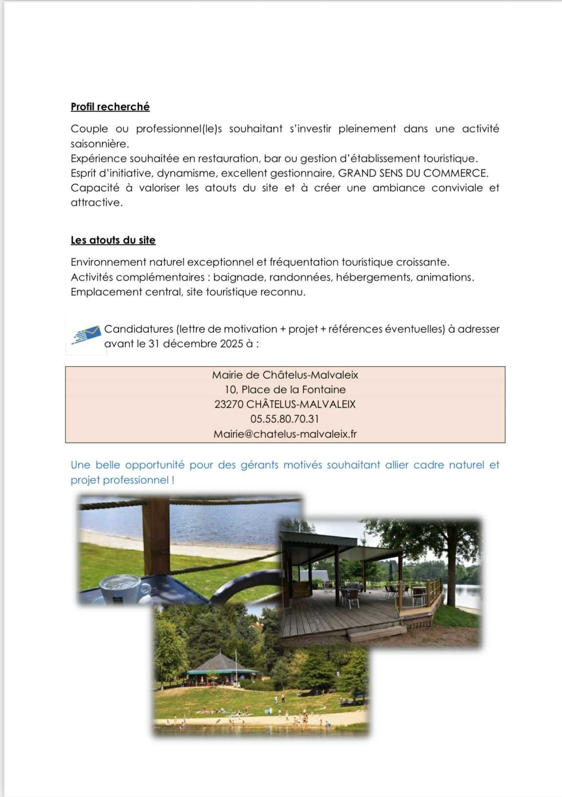 Appel à candidature pour le Bar Restaurant de la Plage